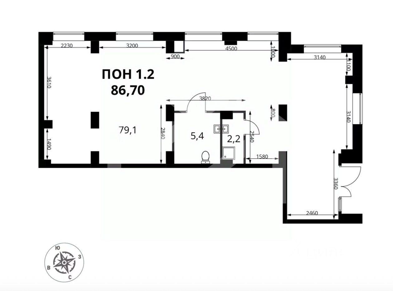 991409-s . Предлагаем помещение свободного назначения формата street-retail в ЖК "1-й Южный", площадью 86.7 кв. м, расположенное на первом этаже 25-этажного жилого дома. Корпус 10. Без комиссии для покупателя.