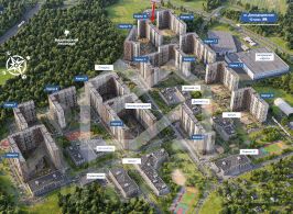 -ЖК состоит из 6 корпусов переменной этажности (от 24 до 25 этажей), рассчитанных на 4 774 квартир;