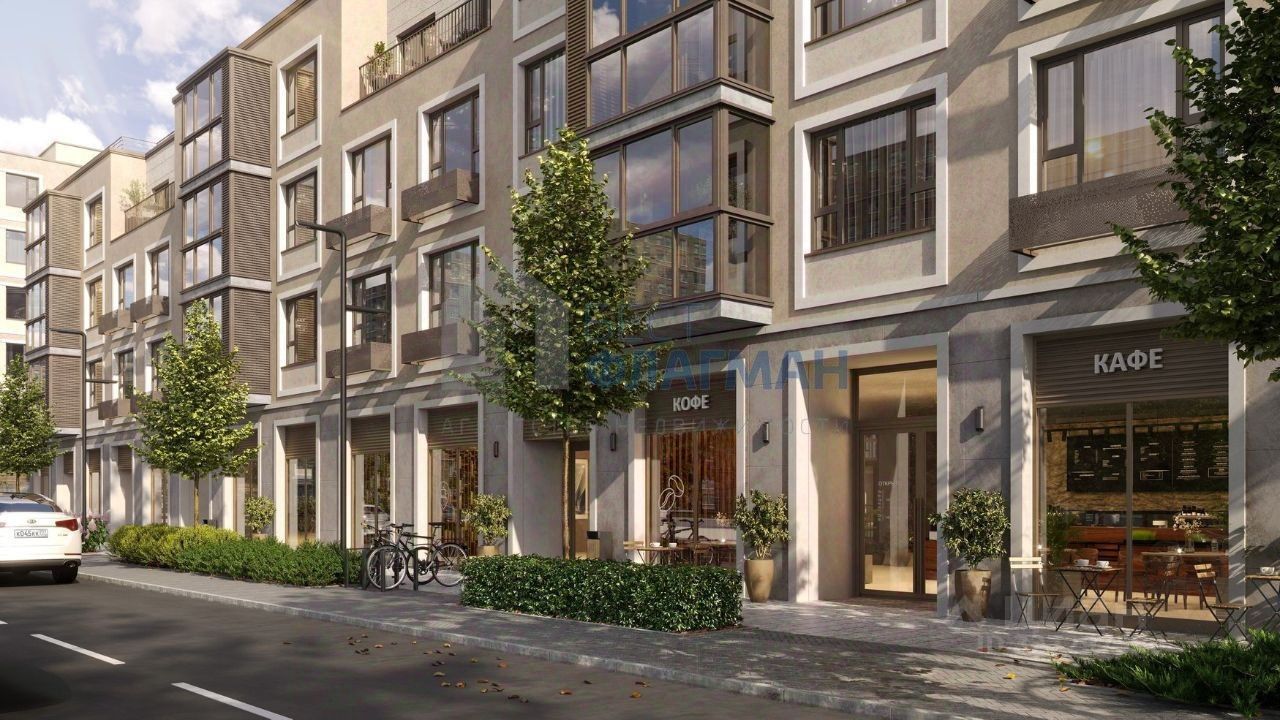 Рядом с коммерческими помещениями предусмотрены пешеходные дорожки и парковочные места.