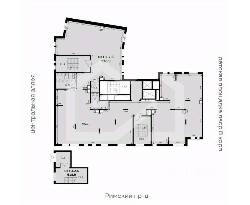 842328. Предлагаем помещение свободного назначения, площадью 510,6 кв. м, расположенное на первом этаже жилого дома в ЖК "UP квартал Римский". Корпус 8. Без комиссии для покупателя.