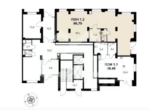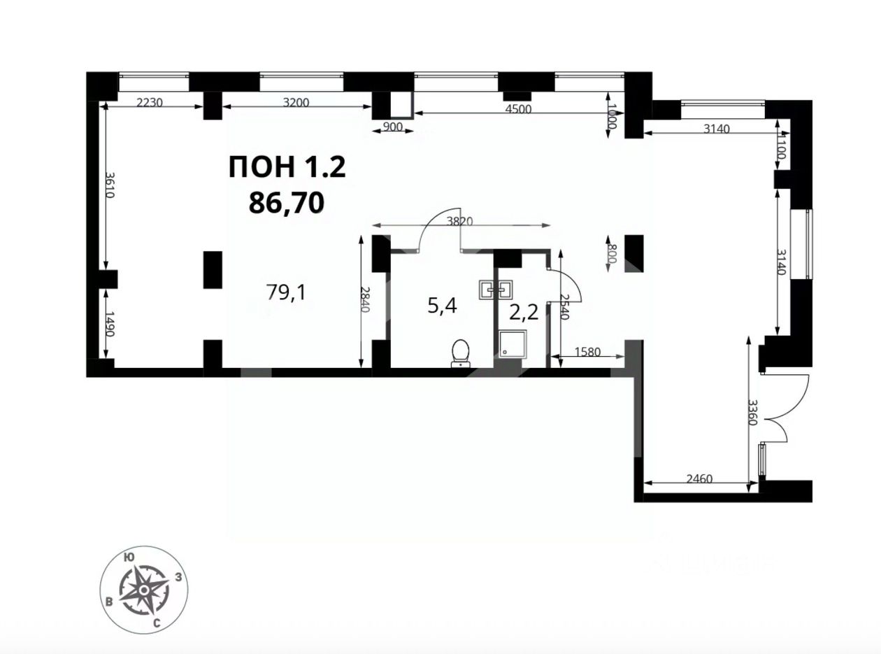 991409. Предлагаем помещение свободного назначения в ЖК "1-й Южный", площадью 86.7 кв. м, расположенное на первом этаже 25-этажного жилого дома. Корпус 10. Без комиссии для покупателя.