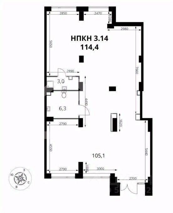 1047746. Предлагаем помещение свободного назначения в ЖК "1-й Донской", площадью 114.4 кв. м, расположенное на первом этаже 24-этажного жилого дома. Корпус: 3. 3 секция. Без комиссии для покупателя.