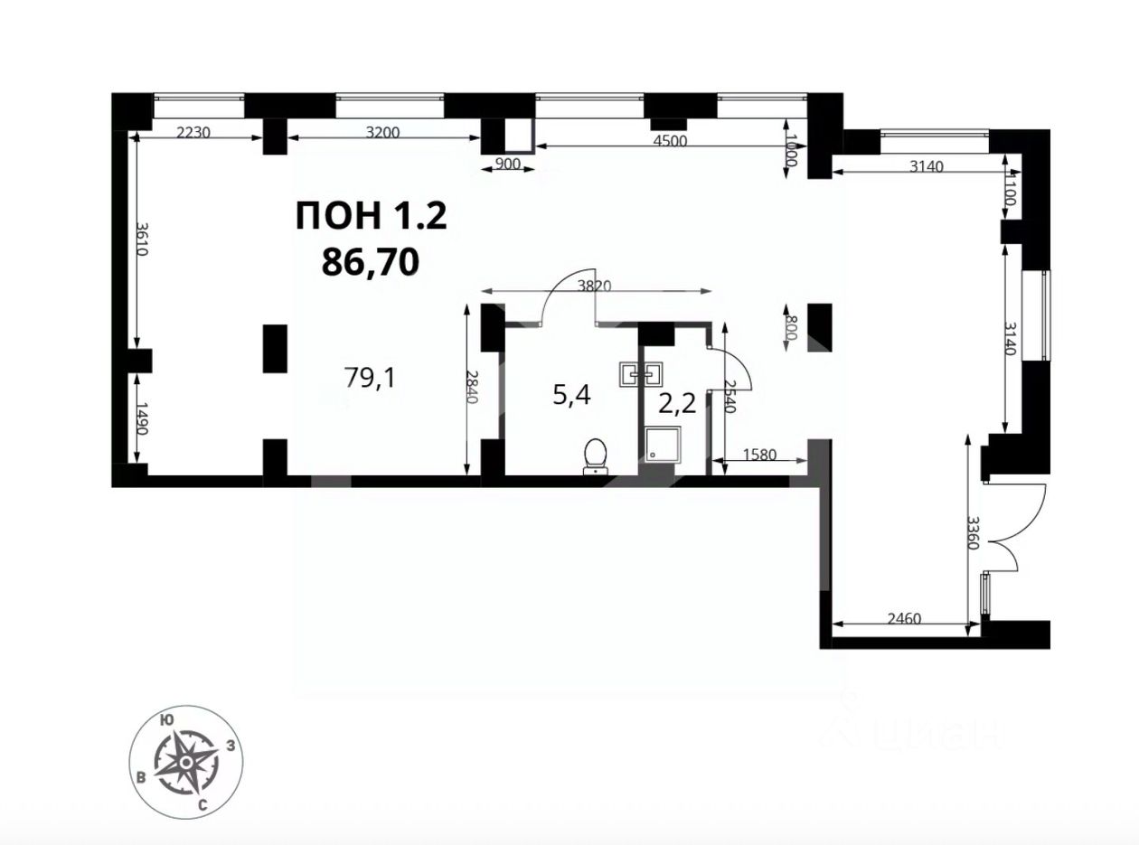 991409. Предлагаем помещение свободного назначения в ЖК "1-й Южный", площадью 86.7 кв. м, расположенное на первом этаже 25-этажного жилого дома. Корпус 10. Без комиссии для покупателя.