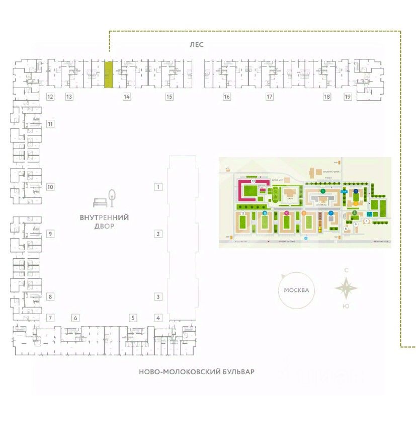 -ЖК состоит из 12 корпусов переменной этажности (от 9 до 12 этажей), рассчитанных на 4 383 квартиры;
