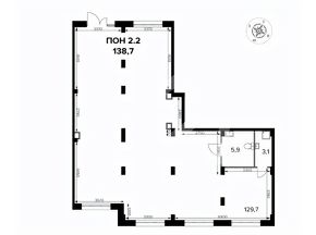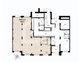 1074739. Предлагаем помещение свободного назначения в ЖК "1-й Донской", площадью 138.7 кв. м, расположенное на первом этаже 24-этажного жилого дома. Корпус 1, секция 2. Без комиссии для покупателя.