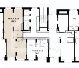 1047745. Предлагаем помещение свободного назначения в ЖК "1-й Донской", площадью 85.3 кв. м, расположенное на первом этаже 24-этажного жилого дома. Корпус: 3. 3 секция. Без комиссии для покупателя.