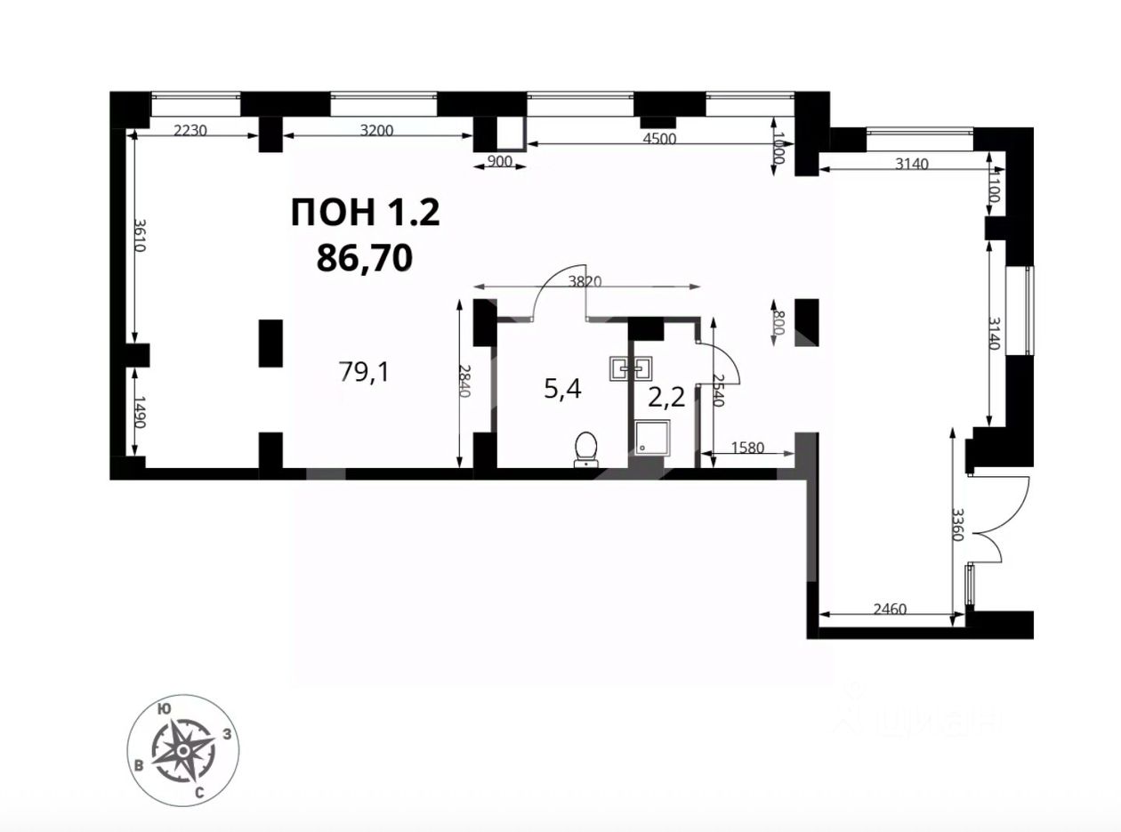 991409. Предлагаем помещение свободного назначения в ЖК "1-й Южный", площадью 86.7 кв. м, расположенное на первом этаже 25-этажного жилого дома. Корпус 10. Без комиссии для покупателя.