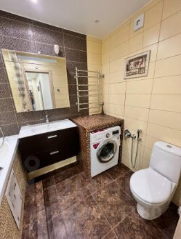 Квартира ОЧЕНЬ светлая. Входная дверь: антивандальное покрытие снаружи, стильная отделка внутри. На площадке метал. тамбурная дверь под ключ (можно хранить коляску, спорт инвентарь). На кухне, в ванной пол с подогревом. В коридоре встроенный огромный шкаф-купе + встроенный шкаф-серверная (с счетчиками, доп.полками). Отдельная гардеробная комната 3 кв м. Большая остекленная лоджия 3,8 кв.м, к лоджии примыкает балкончик (глух. сендвич-панели) 1,2 кв м. Шикарная ванная в кремово-шоколадных оттенках с испанской сантехникой, нишей под стиральную машину, отделанной оригинальной мозаикой. Скрыто установлен бойлер на время летних отключений горячей воды. Перепланировка по объединению СУ согласована, есть новый тех.паспорт БТИ. На стенах дорогие обои, на полу светлый ламинат, в ванне, кухне, балконе, при входе в квартиру - керамогранит. Везде натяжные матовые немецкие потолки. На кухне встроенный фильтр воды. При ремонте делалась гидроизоляция по всей квартире, качественная проводка электрики. Освещение - светодиодные лампы по всей квартире + люстры.