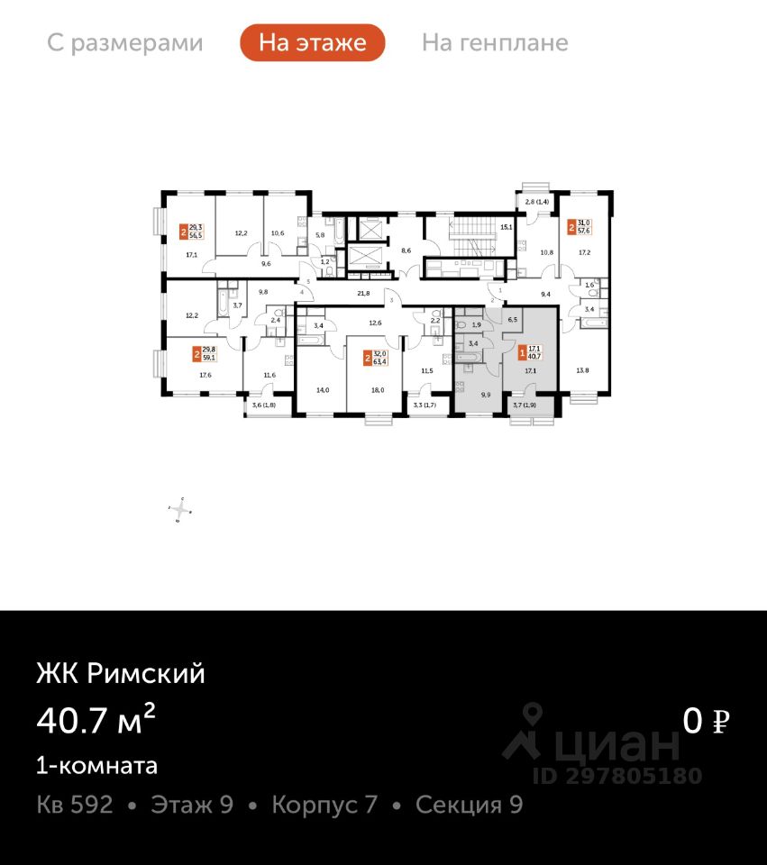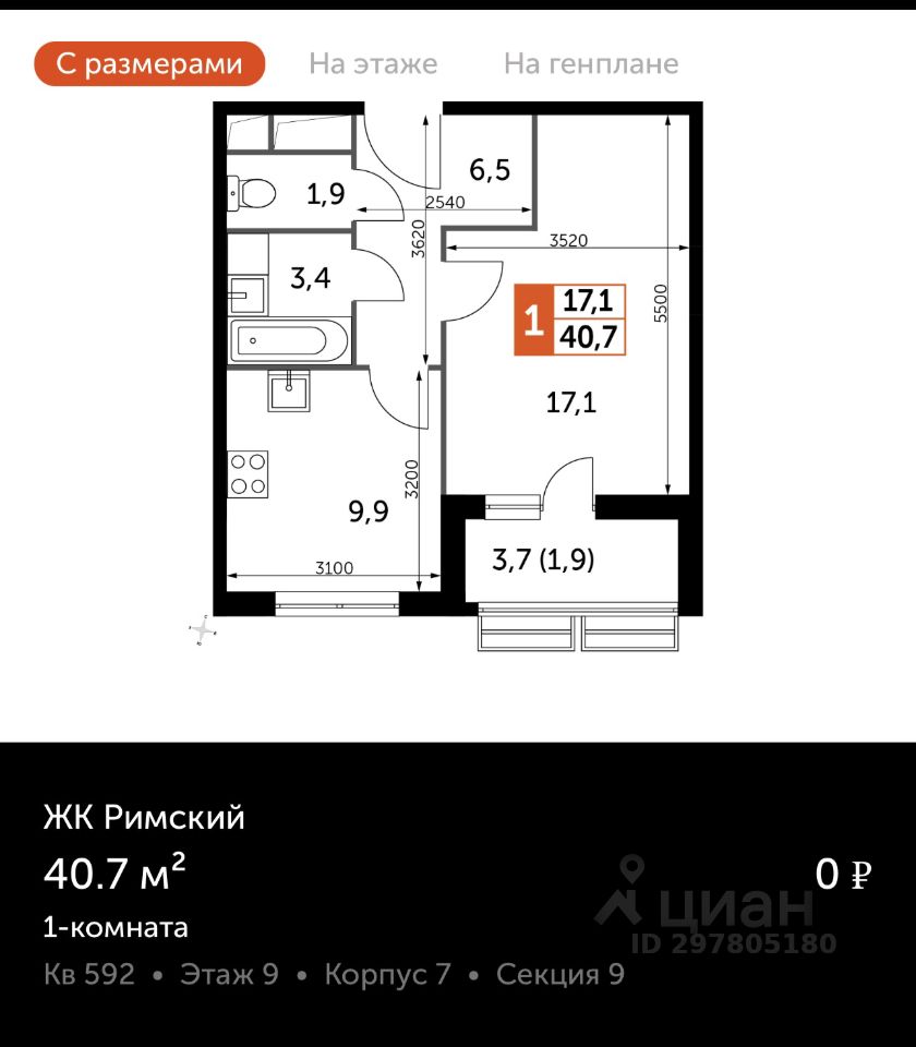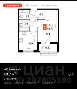 40,7 м²