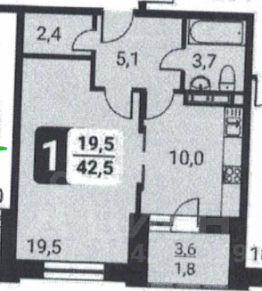 Квартира расположена на 10 этаже, что позволяет наслаждаться прекрасным видом из окон на ухоженный двор. Жилая площадь составляет 19.5 квадратных метров, а кухня 10 квадратных метров, что создаёт комфортное пространство для жизни и приготовления пищи. Санузел совмещённый.