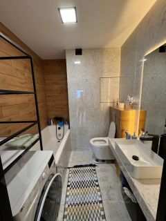Квартира оборудована хорошо, дорогой бытовой техникой.
