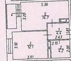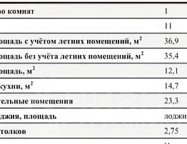Общая площадь квартиры без учета лоджии 35.4 кв.м., площадь комнаты 12.1 кв.м., площадь кухни - гостинной 14.7 кв.м. , санузел совмещённый.