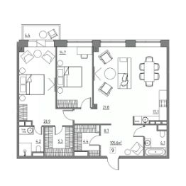 Продаются 3-комнатные апартаменты в строящемся доме (Корпус 2), срок сдачи: III-кв. 2025, общей площадью 105.6 кв.м., на 2 этаже. Загородное спокойствие в сочетании с городским комфортом. Именно так можно описать современный жилой комплекс Residence 15, расположенный в непосредственной близости от Москвы.Апартаменты в пригороде - это постоянная возможность наслаждаться тишиной и свежим воздухом вдали от городской суеты, при этом не отказываясь от удобств и благ цивилизации. Покой, умиротворение, комфорт и безопасность - вот что мы предлагаем Вам.