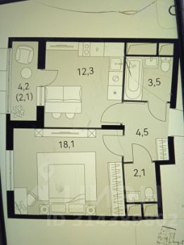 Квартира общей площадью 40.4 кв. м, с лоджией - 44,6 кв.м, потолки высотой 2,8 м.