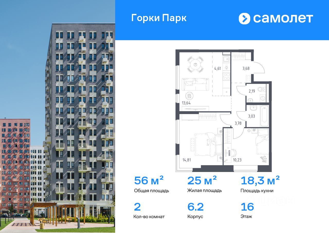 Строим кварталы для жизни с заботой о будущем. Предлагается 2-комнатная квартира комфорт-класса 55,97 кв.м в корпусе 6.2 на 16 этаже, в ЖК "Горки Парк"