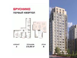 Квартира с кухней-гостиной и тремя спальнями в "Первом квартале". Особенности планировки: окна на две стороны, второй санузел, окна в пол, без отделки, тёплая лоджия, разнесённые спальни, терраса, балкон, терраса на крыше.