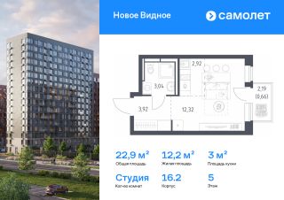 Предлагается квартира студия комфорт-класса 22,86 кв.м в корпусе 16.2 на 5 этаже, в ЖК "Новое Видное"