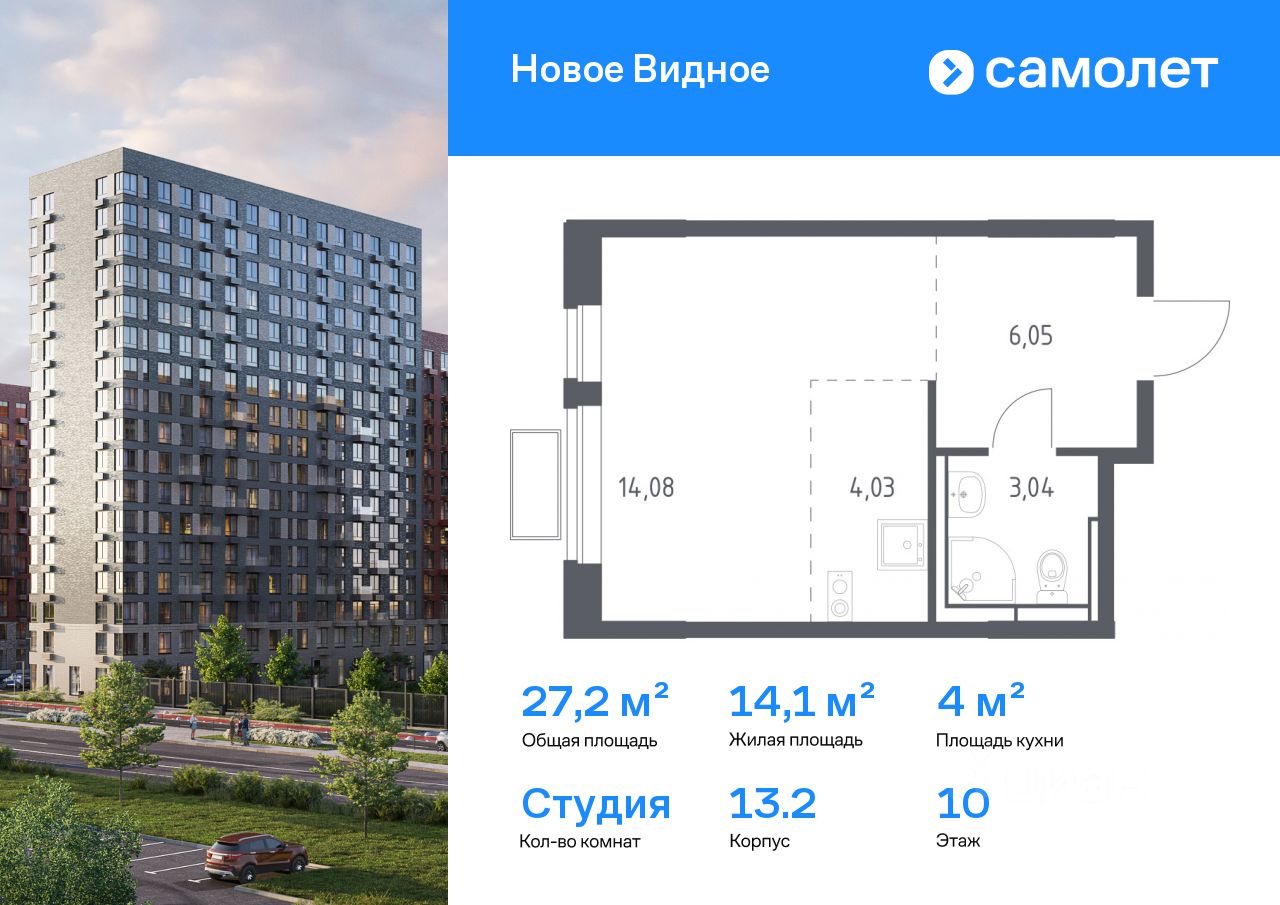 Предлагается квартира студия комфорт-класса 27,2 кв.м в корпусе 13.2 на 10 этаже, в ЖК "Новое Видное"
