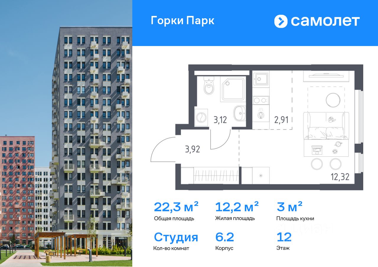 Предлагается квартира студия комфорт-класса 22,27 кв.м в корпусе 6.2 на 12 этаже, в ЖК "Горки Парк"