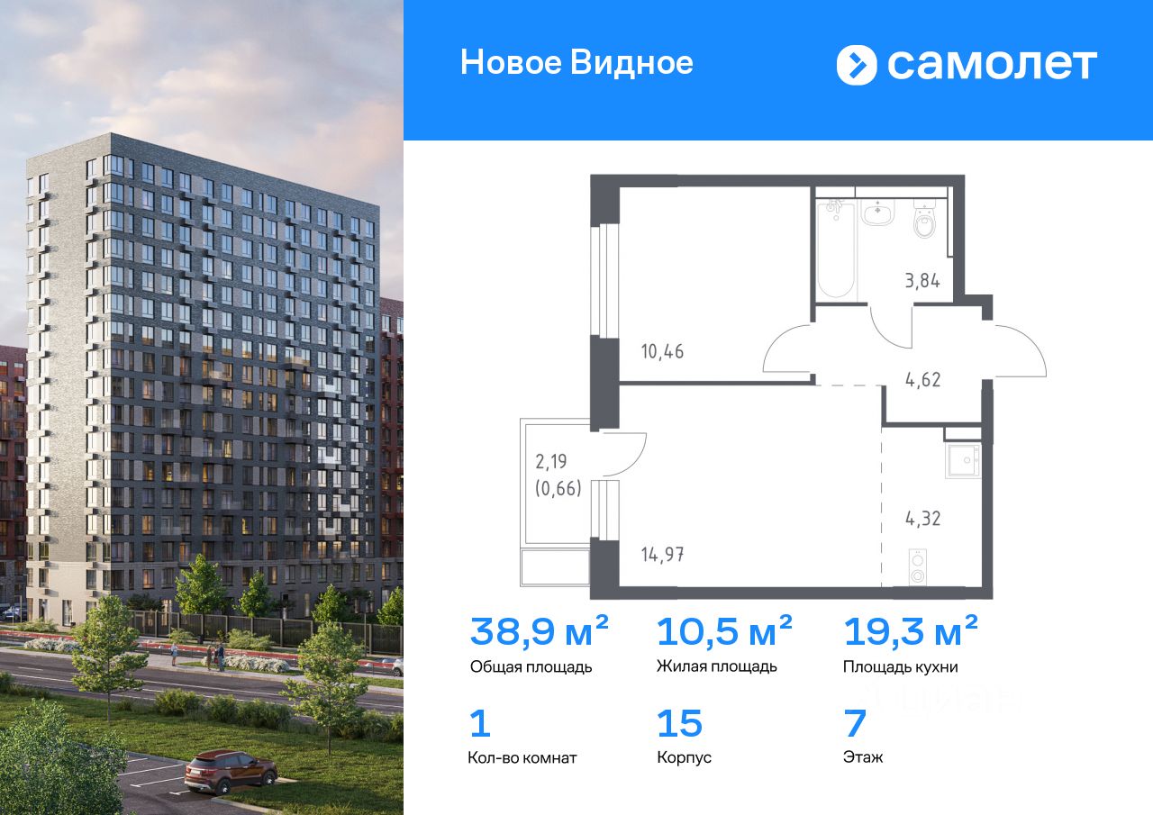 Предлагается 1-комнатная квартира комфорт-класса 38,87 кв.м в корпусе 15 на 7 этаже, в ЖК "Новое Видное"