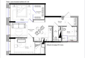 • Два отдельных санузла, общий (ванна, душевая кабина, раковина, унитаз) + гостевой (унитаз, раковина)