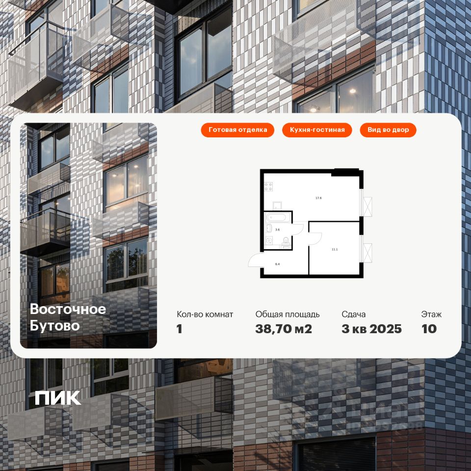 Продаётся 1-комн. квартира площадью 38 кв.м на 10 этаже 16 этажного дома (Корпус 41, Секция 1) проекта ПИК Восточное Бутово. Светлый просторный подъезд на уровне земли, функциональная планировка, большие окна, c отделкой.