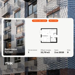 Продаётся 1-комн. квартира площадью 32,7 кв.м на 9 этаже 17 этажного дома (Корпус 48, Секция 2) проекта ПИК Восточное Бутово. Светлый просторный подъезд на уровне земли, функциональная планировка, большие окна, предчистовая отделка.