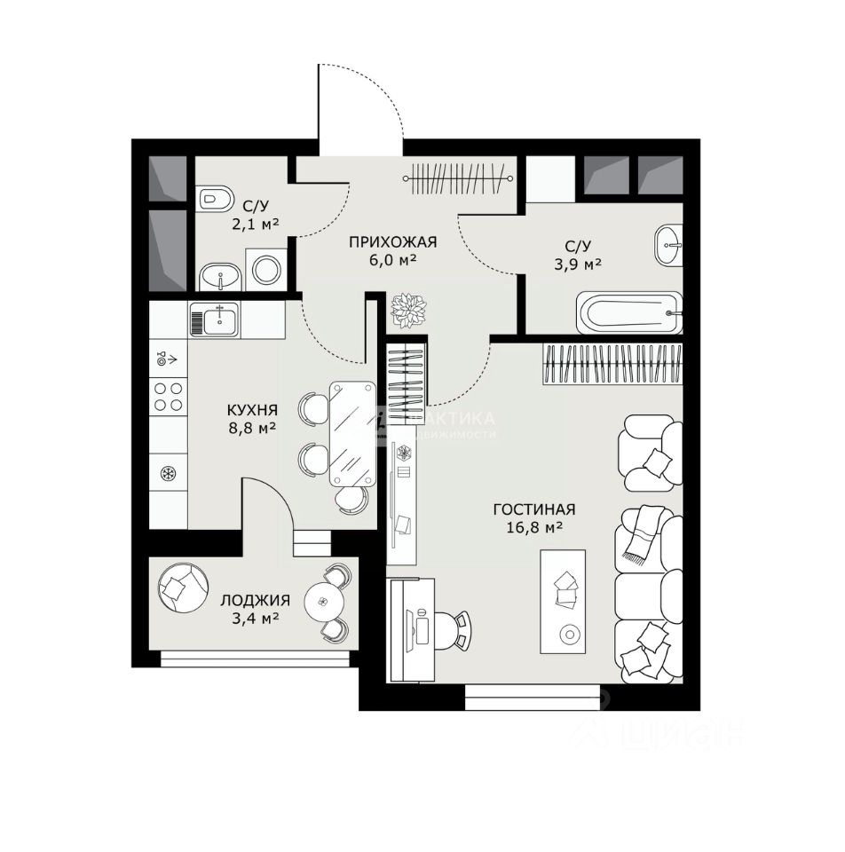 •идеальная планировка: комнаты изолированы, светлая кухня, раздельный санузел и своя лоджия, где приятно выпить утренний кофе или устроить зону отдыха