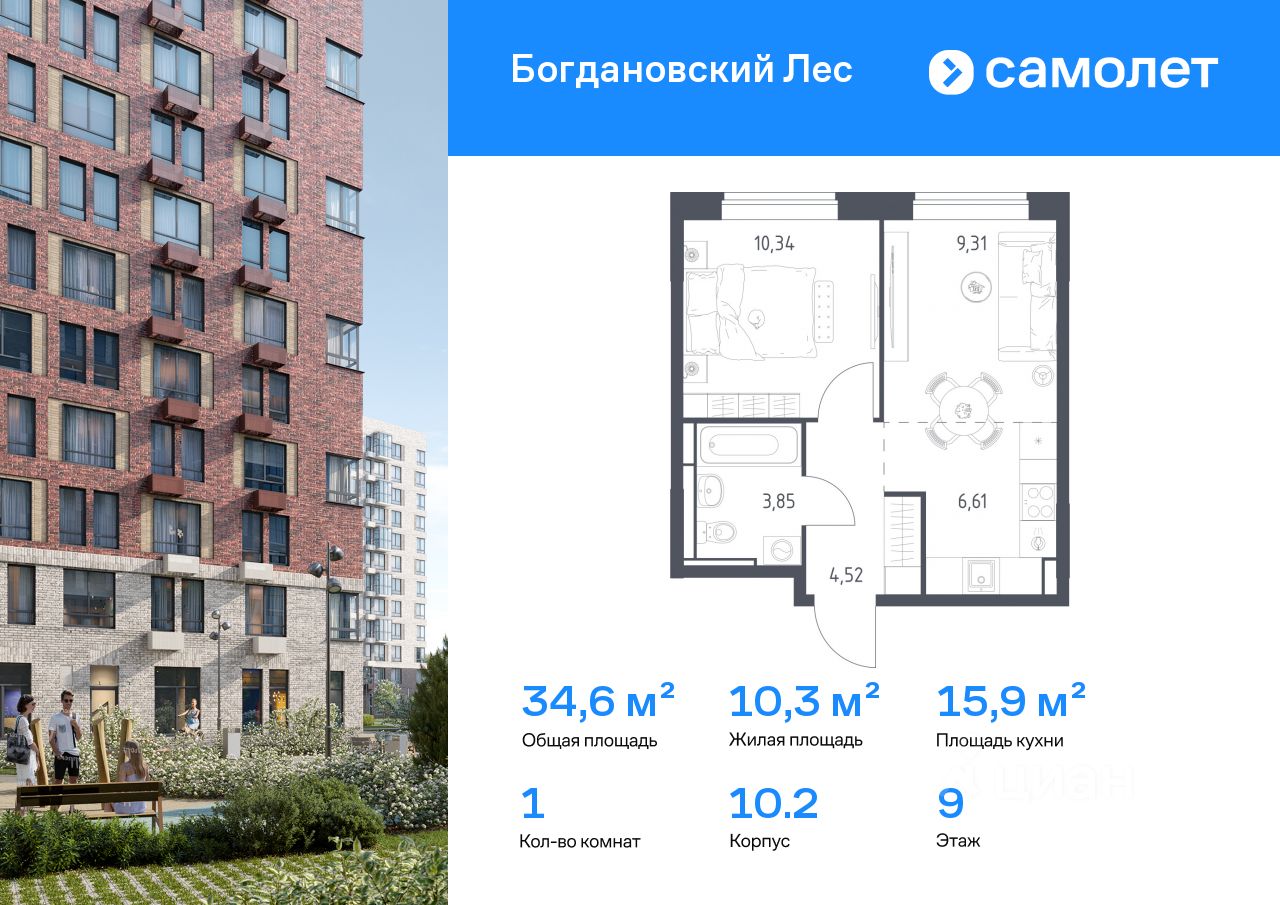 Предлагается 1-комнатная квартира комфорт-класса 34,63 кв.м в корпусе 10.2 на 9 этаже, в ЖК "Богдановский Лес"