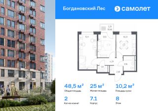 Предлагается 2-комнатная квартира комфорт-класса 48,47 кв.м в корпусе 7.1 на 8 этаже, в ЖК "Богдановский Лес"