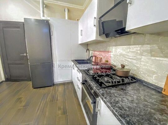 Уютная кухня с новой встроенной техникой и обилием мест для хранения