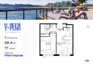 Продаётся 1-комнатная квартира общей площадью 36.40 м² с предчистовой отделкой в ЖК "У реки. Эко Видное 2.0" на 17-м этаже корпуса Нестеров.