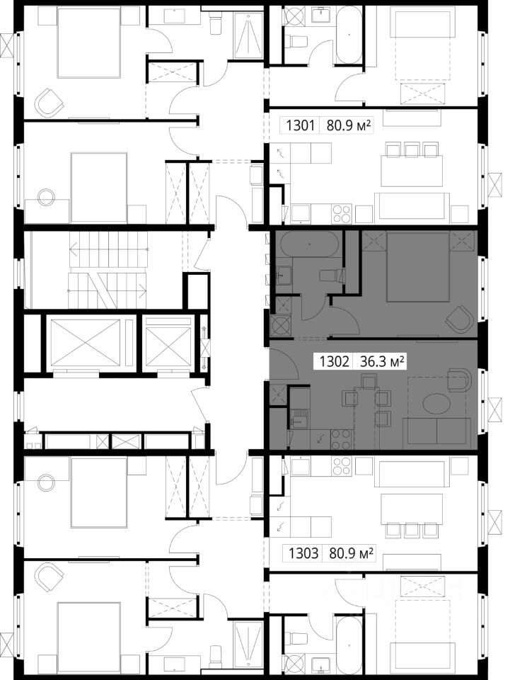 Продаётся 1-комнатная квартира общей площадью 36.30 м² с предчистовой отделкой в ЖК "У реки. Эко Видное 2.0" на 17-м этаже корпуса Нестеров.