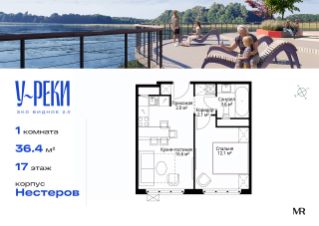Продаётся 1-комнатная квартира общей площадью 36.40 м² с предчистовой отделкой в ЖК "У реки. Эко Видное 2.0" на 17-м этаже корпуса Нестеров.