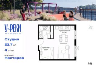 Продаётся студия общей площадью 33.70 м² с предчистовой отделкой в ЖК "У реки. Эко Видное 2.0" на 4-м этаже корпуса Нестеров.
