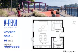 Продаётся студия общей площадью 33.80 м² с предчистовой отделкой в ЖК "У реки. Эко Видное 2.0" на 14-м этаже корпуса Нестеров.