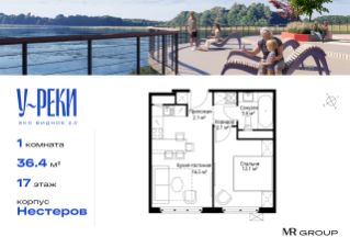 Продаётся 1-комнатная квартира общей площадью 36.40 м² с предчистовой отделкой в ЖК "У реки. Эко Видное 2.0" на 17-м этаже корпуса Нестеров.