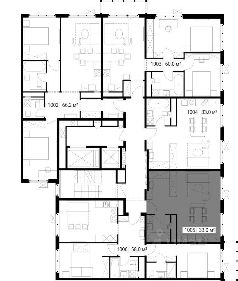 Продаётся 1-комнатная квартира общей площадью 33 м² с предчистовой отделкой в ЖК "У реки. Эко Видное 2.0" на 17-м этаже корпуса Нестеров.