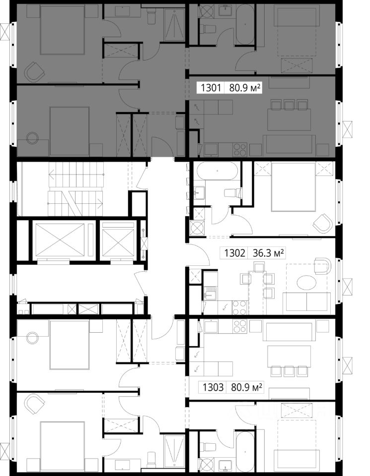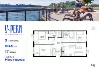 Продаётся 3-комнатная квартира общей площадью 80.90 м² с предчистовой отделкой в ЖК "У реки. Эко Видное 2.0" на 17-м этаже корпуса Нестеров.