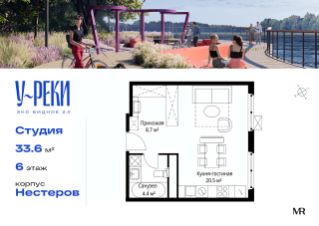 Продаётся студия общей площадью 33.60 м² с предчистовой отделкой в ЖК "У реки. Эко Видное 2.0" на 6-м этаже корпуса Нестеров.