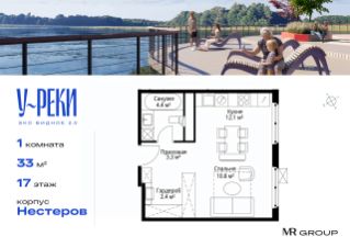 Продаётся 1-комнатная квартира общей площадью 33 м² с предчистовой отделкой в ЖК "У реки. Эко Видное 2.0" на 17-м этаже корпуса Нестеров.