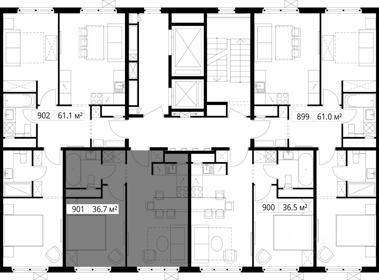 Продаётся 1-к квартира общей площадью 36.70 м² с предчистовой отделкой в ЖК "У реки. Эко Видное 2.0" на 11-м этаже корпуса Нестеров.