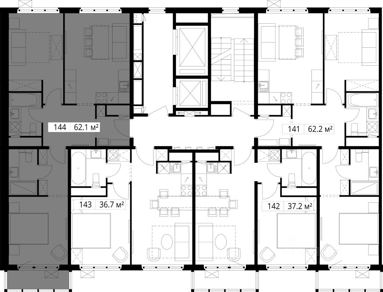Продаётся 2-комнатная квартира общей площадью 62.10 м² с предчистовой отделкой в ЖК "У реки. Эко Видное 2.0" на 17-м этаже корпуса Нестеров.