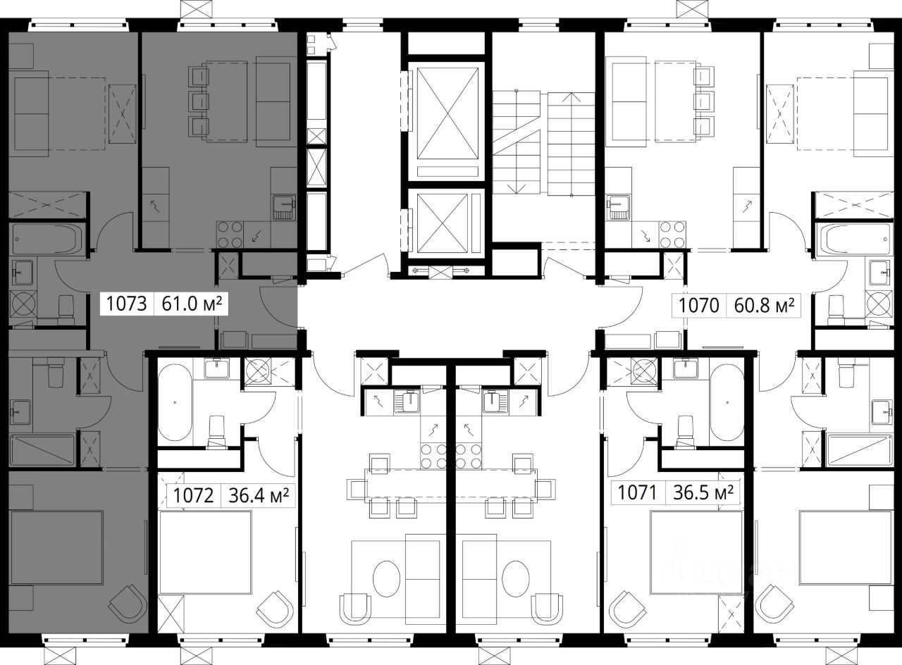 Продаётся 2-комнатная квартира общей площадью 61 м² без отделки в ЖК "У реки. Эко Видное 2.0" на 10-м этаже 17 этажного корпуса Левитан.