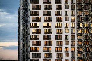 Семнадцатиэтажный корпус "Левитан" состоит из 13 секций, образующих в плане закрытый периметр двора.
