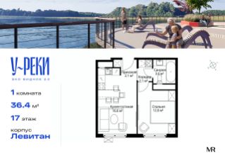 Продаётся 1-комнатная квартира общей площадью 36.40 м² без отделки в ЖК "У реки. Эко Видное 2.0" на 17-м этаже 17 этажного корпуса Левитан.