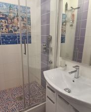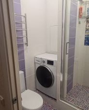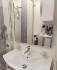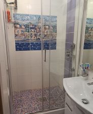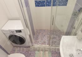 - Caн.узел.( душевая кабина 1*2 метра. Удобная для взрослых и крупных людей); Счетчики установлены на горячую и холодную воду. Стиральная машина Ханса( остается)