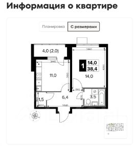 Общая площадь: 38,4 кв.м,