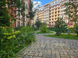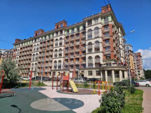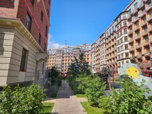 Двор огромный, зелёный, с шикарными детскими и спортивными площадками.