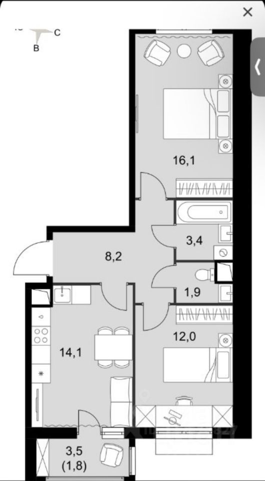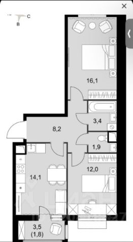 Продаётся 2к квартира общей площадью 57.2кв.м. на 2-м этаже 12 этажного дома.